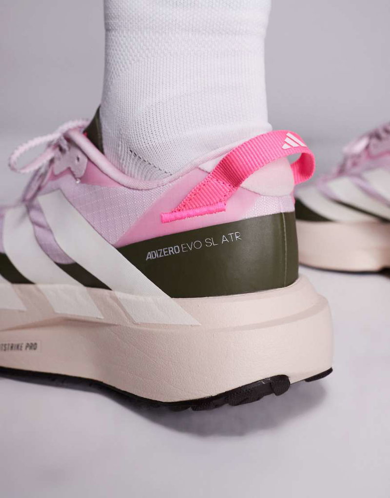 Running Adizero EVO SL ATR Trainers In Pink Stone With White Stripes