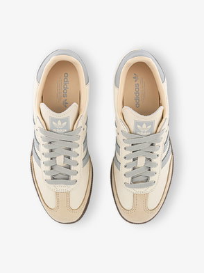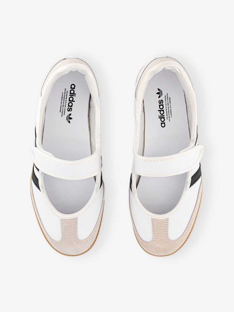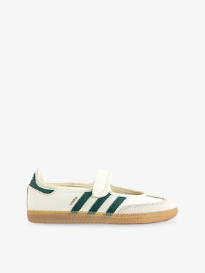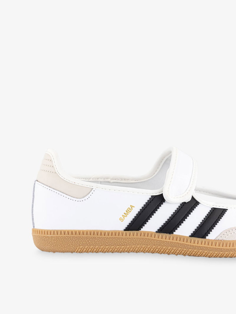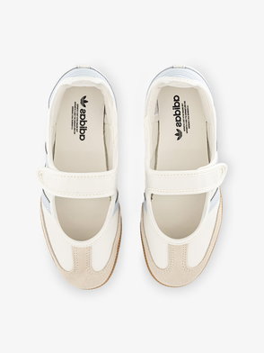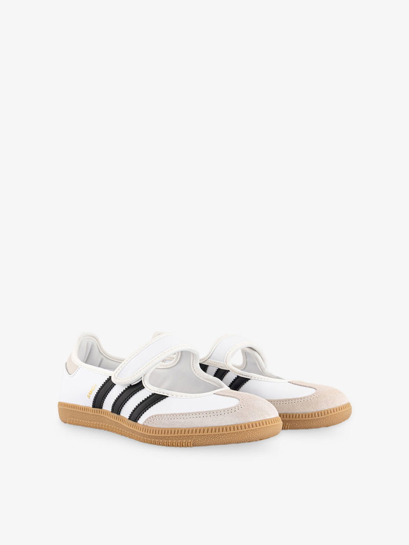 Adidas leather trainers. Hook-and-loop tape fastening. T-toe panel, Mary Jane style, logo detailing, contrast gum sole.