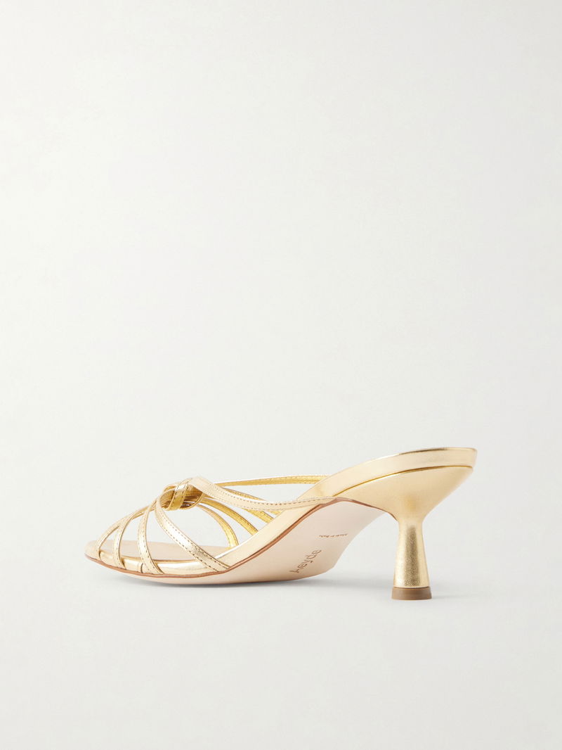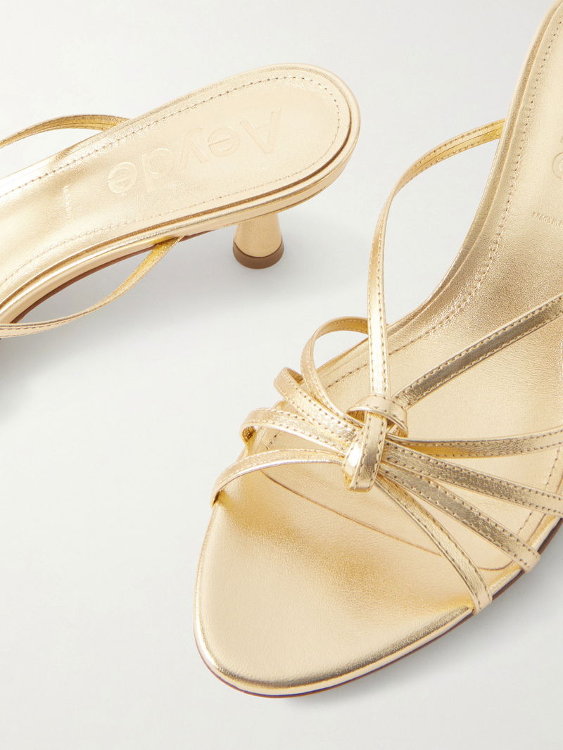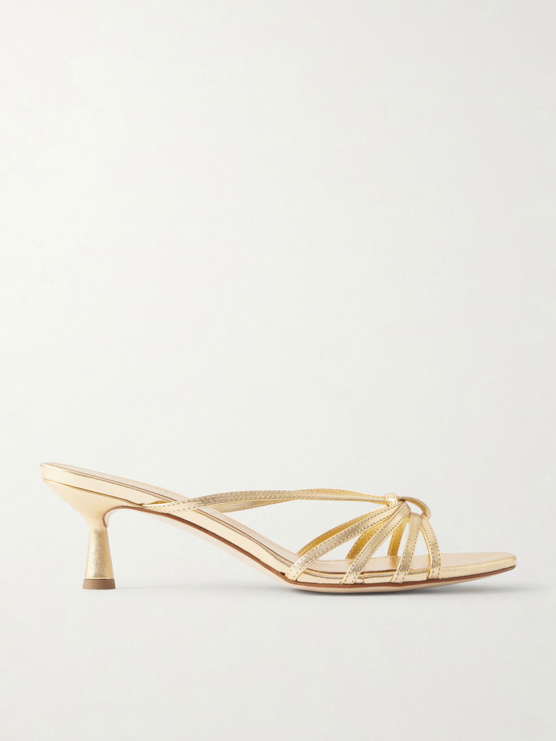 Aeyde's 'Abby' mules stay true to ever chic '90s styles. They're made from metallic leather with a slim cage of straps and a dainty kitten heel.
