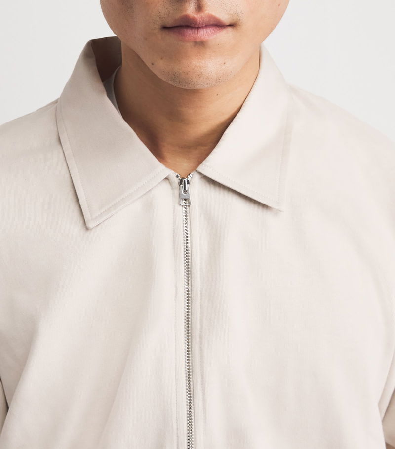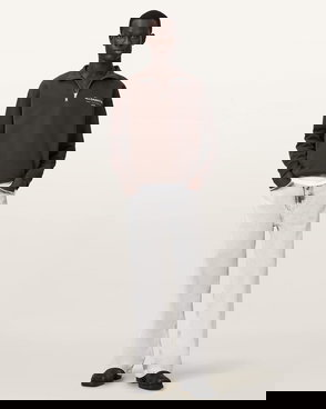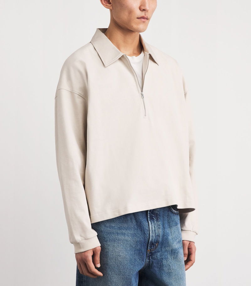 The pure cotton construction offers breathability and insulation alike, keeping you thermally regulated as the temperature changes, while the half-zip and sharp polo collar lend practicality and refinement in equal measure.