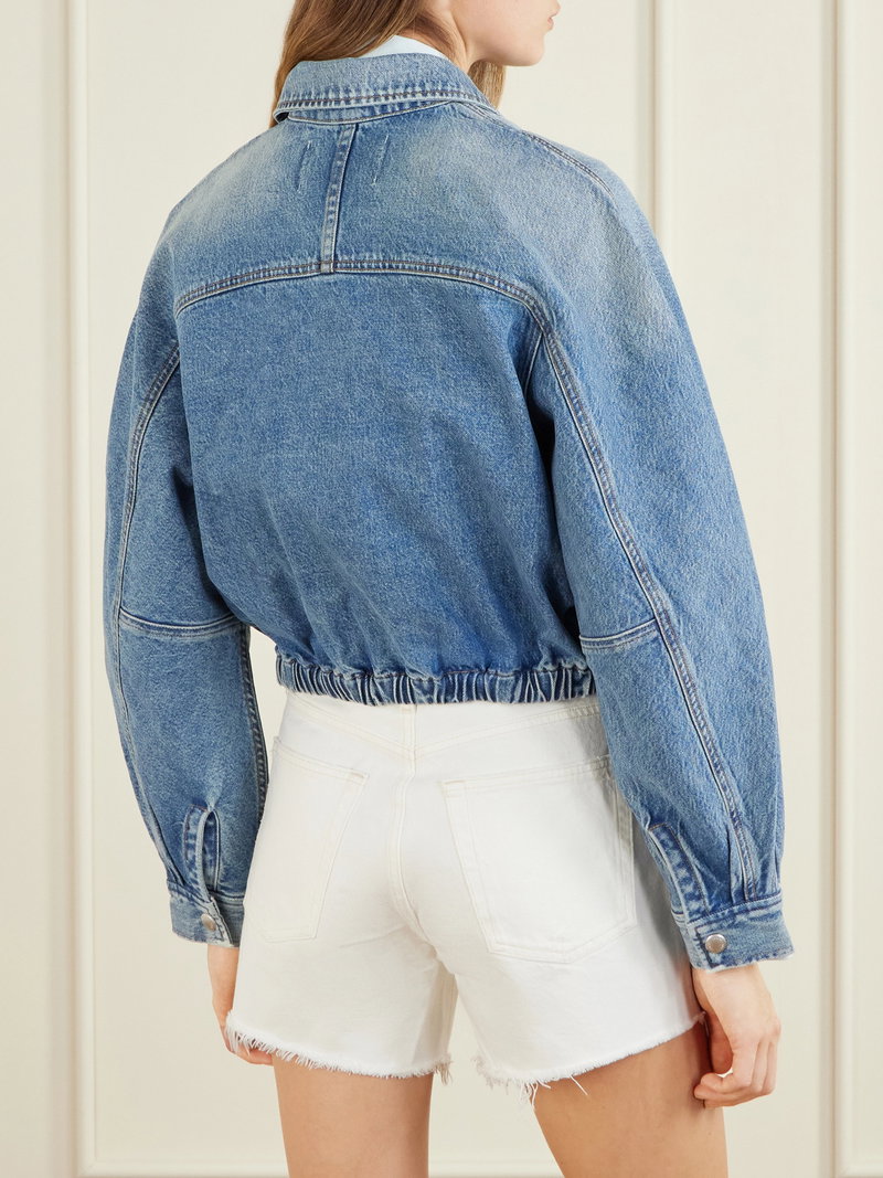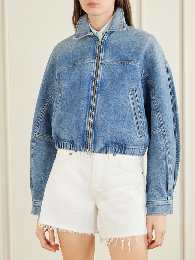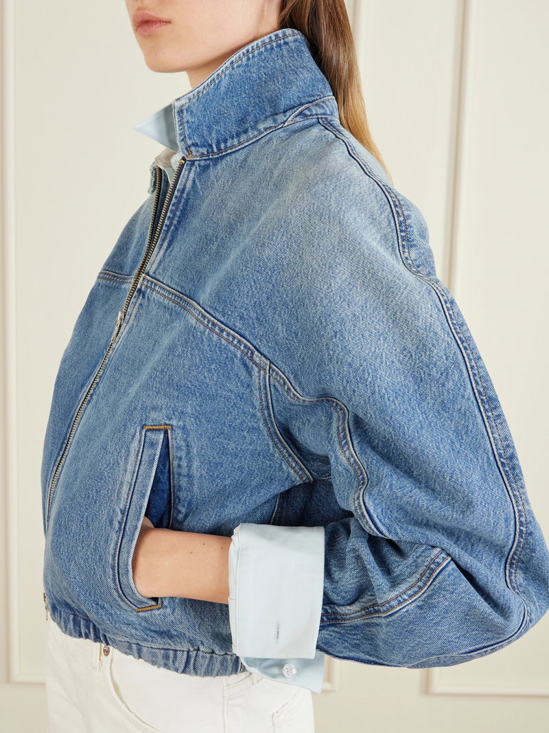 AGOLDE’s ‘Dixon’ jacket reinvents classic denim with sculptural shapes and relaxed tailoring. Crafted from vintage indigo denim, it features a relaxed cocoon fit with a pointed collar and an elasticated hem that creates gentle volume throughout the silhouette.