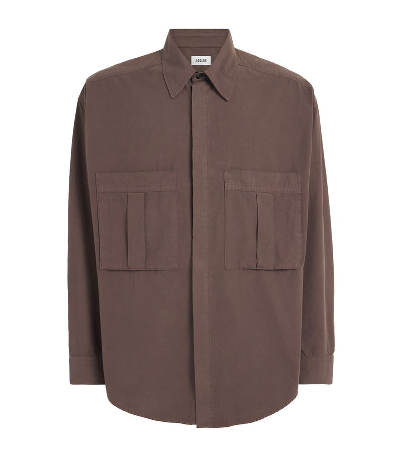 Introducing a functional twist to the classic button-up shirt, this design from agolde features a duo of pleated pockets on its chest.