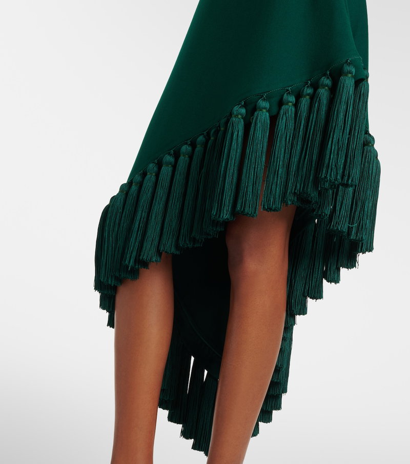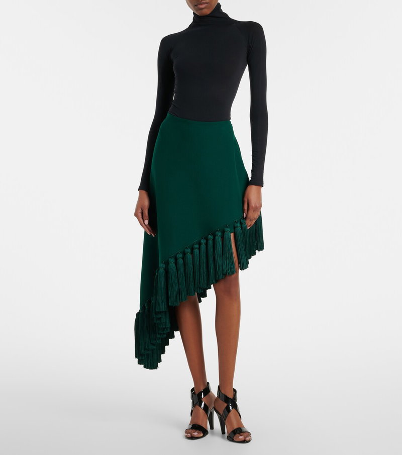Upholding the legacy of Azzedine Alaïa, the maison’s collections achieve an artful balance between sculptural and wearable. Crafted from wool gabardine, this midi skirt boasts an asymmetric silhouette trimmed with removable tassels.
