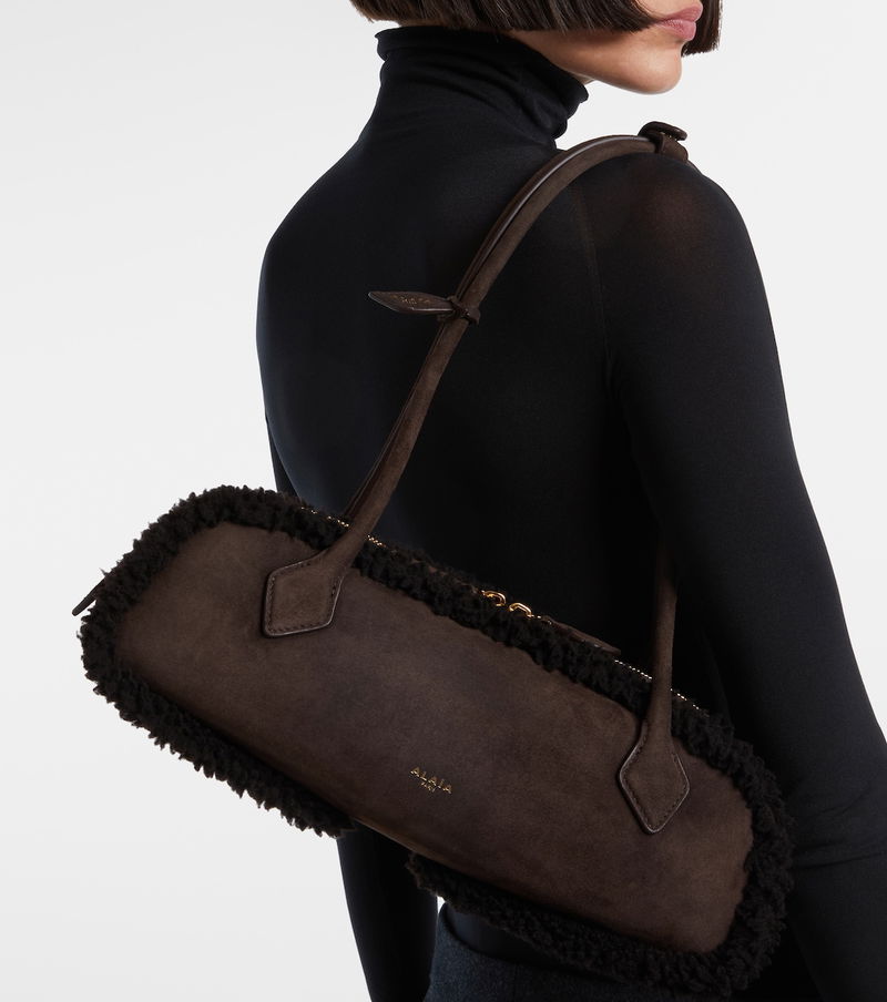 Boasting an instantly recognizable silhouette, Alaïa's Le Teckel shoulder bag is an iconic addition to your collection. Crafted from soft suede, this Medium iteration is trimmed with shearling and features elongated tubular handles and a zipped top.