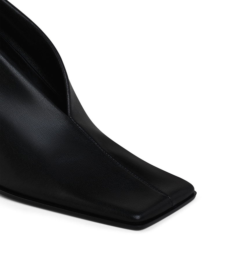 A low-cut vamp lends an air of effortless elegance, while the square toe introduces a modern edge – harmoniously balanced by the sophistication of the contrasting stacked heel.