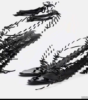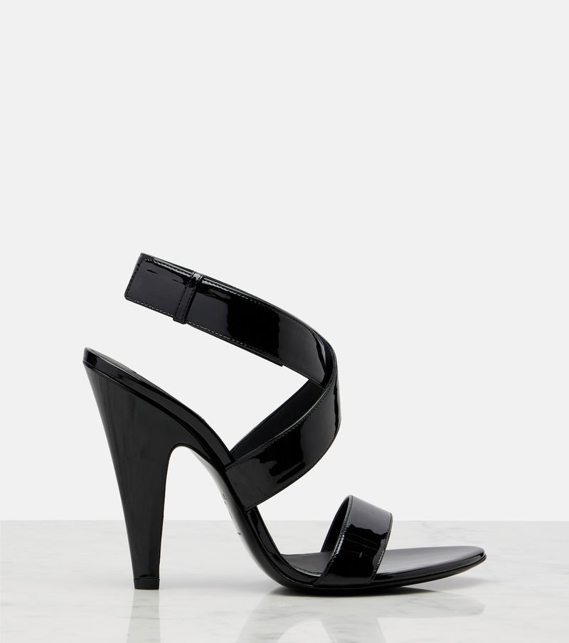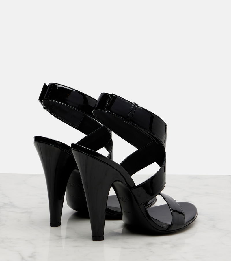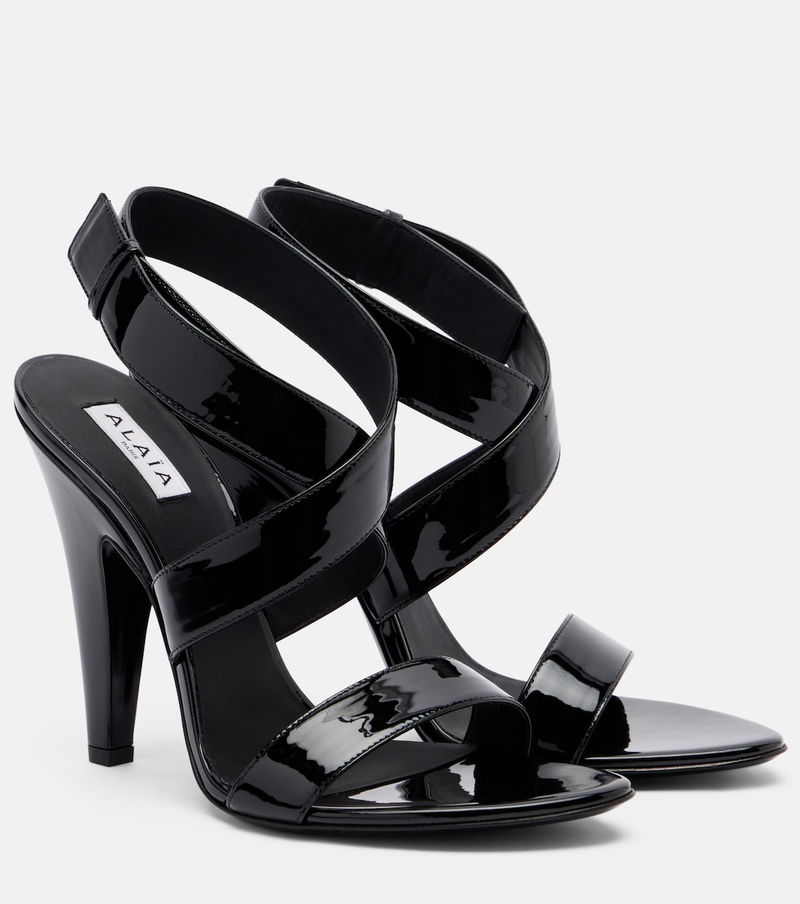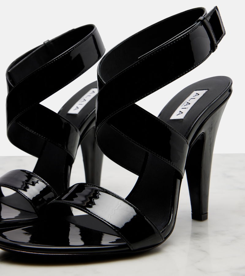 Step into these bold black sandals from Alaïa. Crafted in Italy from glossy patent leather, the pair stands on conical heels and features criss-crossing straps up to the ankles.