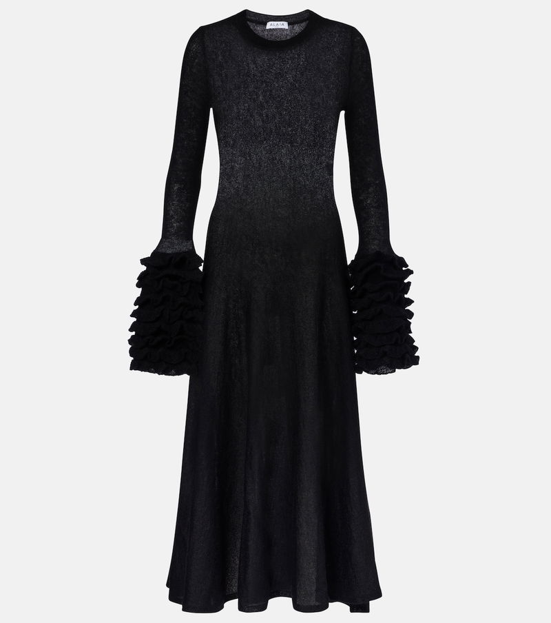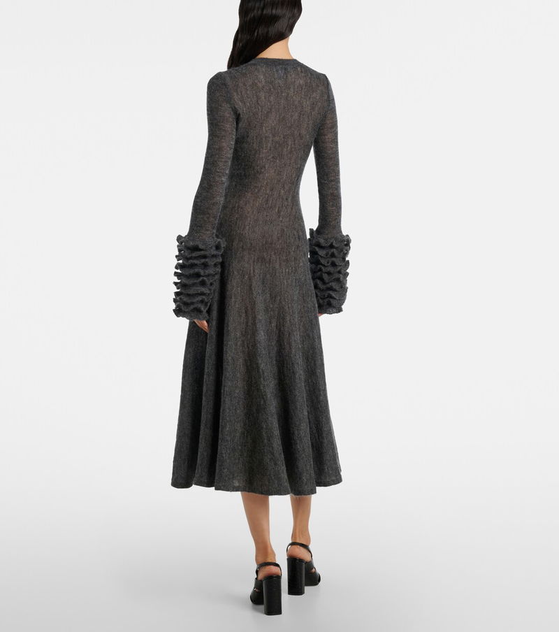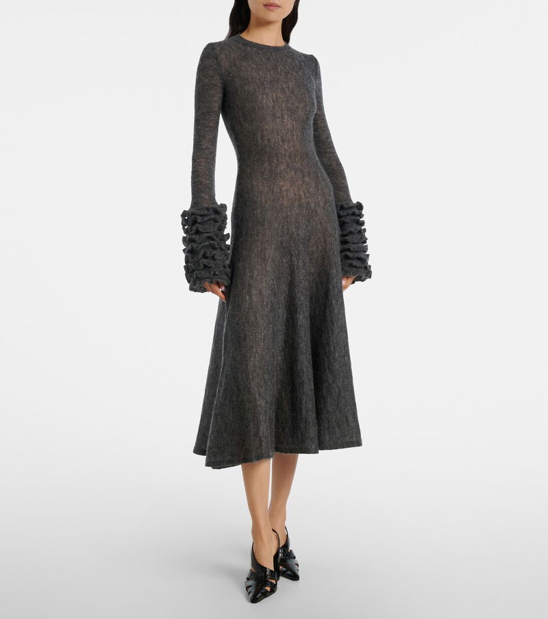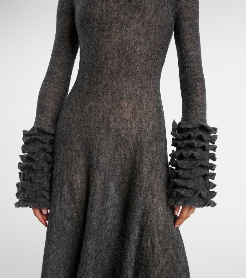 Honoring Azzedine Alaïa’s legacy, Alaïa’s sculptural yet wearable collections hold an artful balance that only the most skilled designers can achieve. Made from mohair-blend material, this midi dress is characterized by its ruffled cuffs.