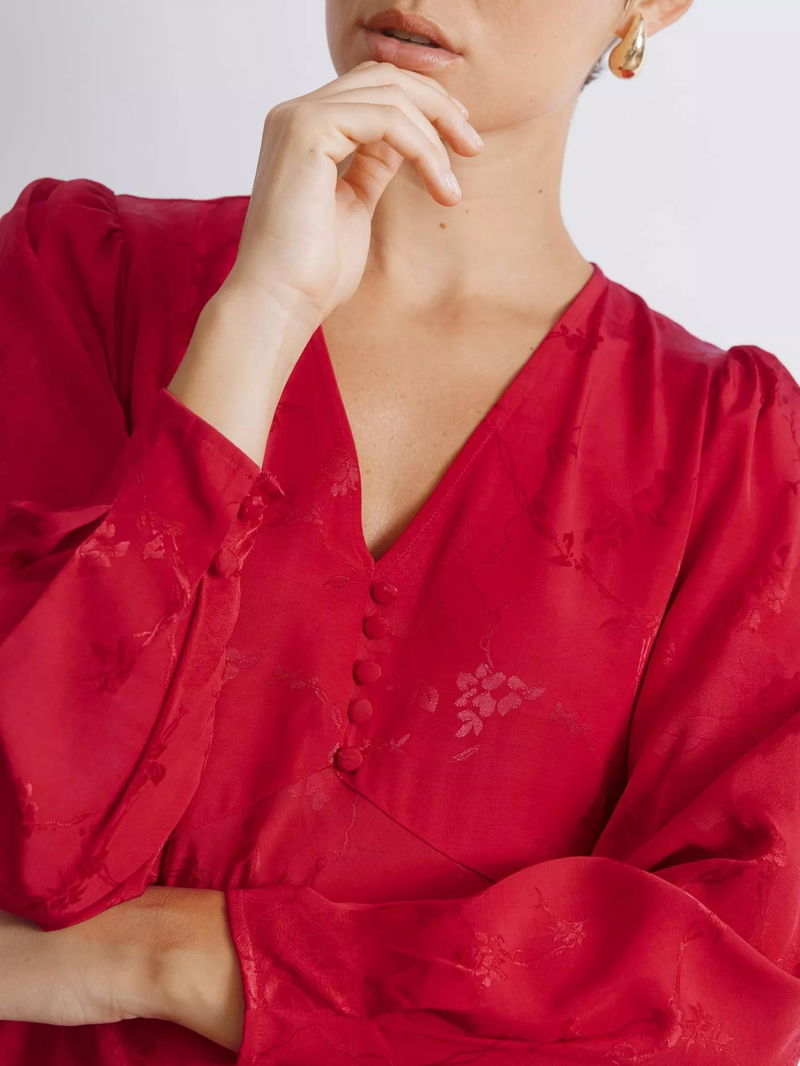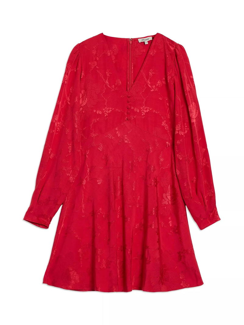 Jacquard Floral Satin Mini Dress, Red