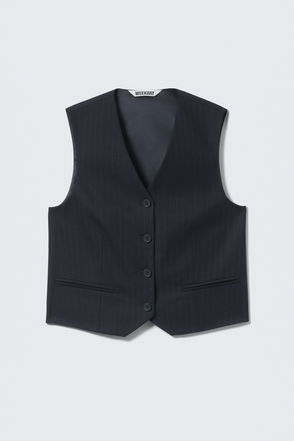 A tailored waistcoat cut from a pinstripe and fully lined. Featuring a round neckline and back adjuster. When dressed down with jeans for a more casual feel, this waistcoat is a timeless addition to any wardrobe.