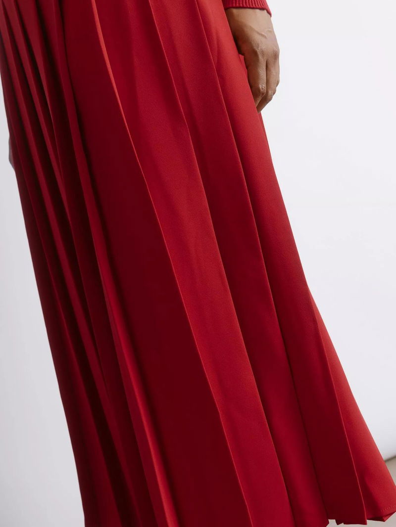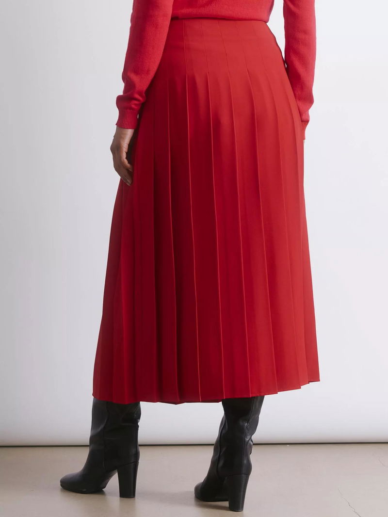 Pleated Midi Skirt, Red