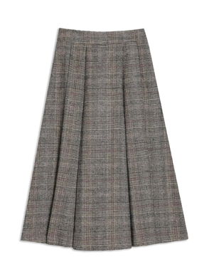 A cool summer midi skirt with smocked waistband and side pockets in a soft linen mix in a classic summer stripe. This skirt works as well with Jersey tops.