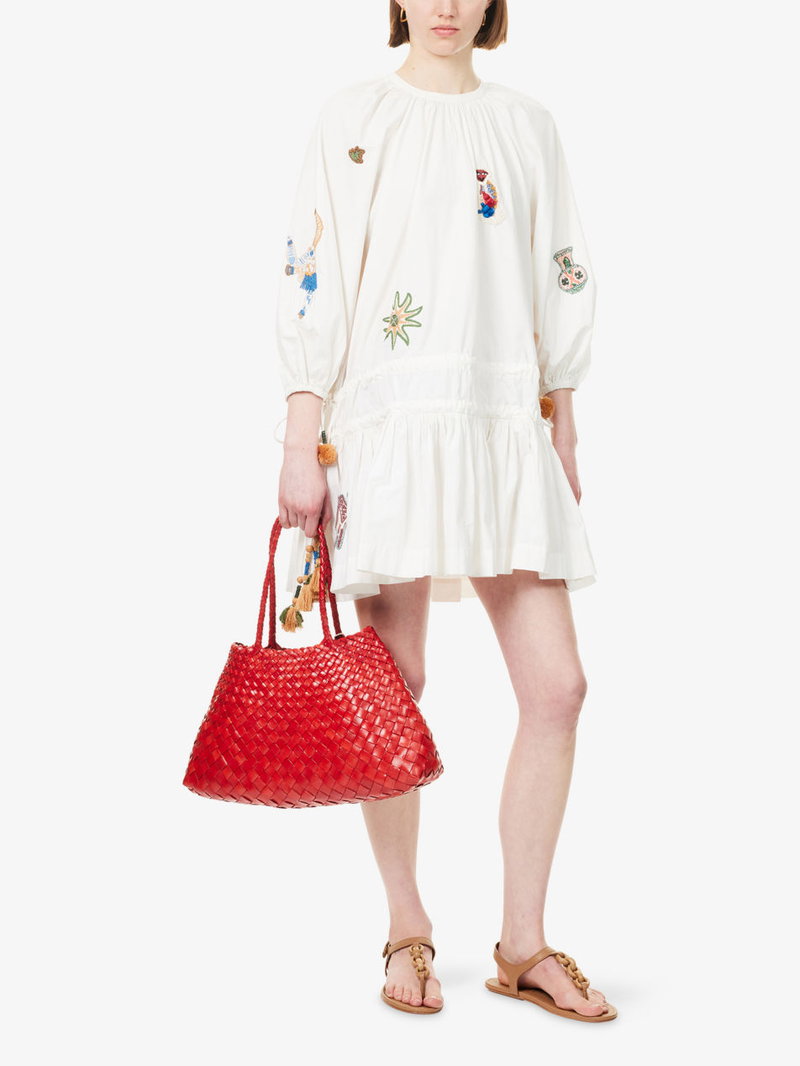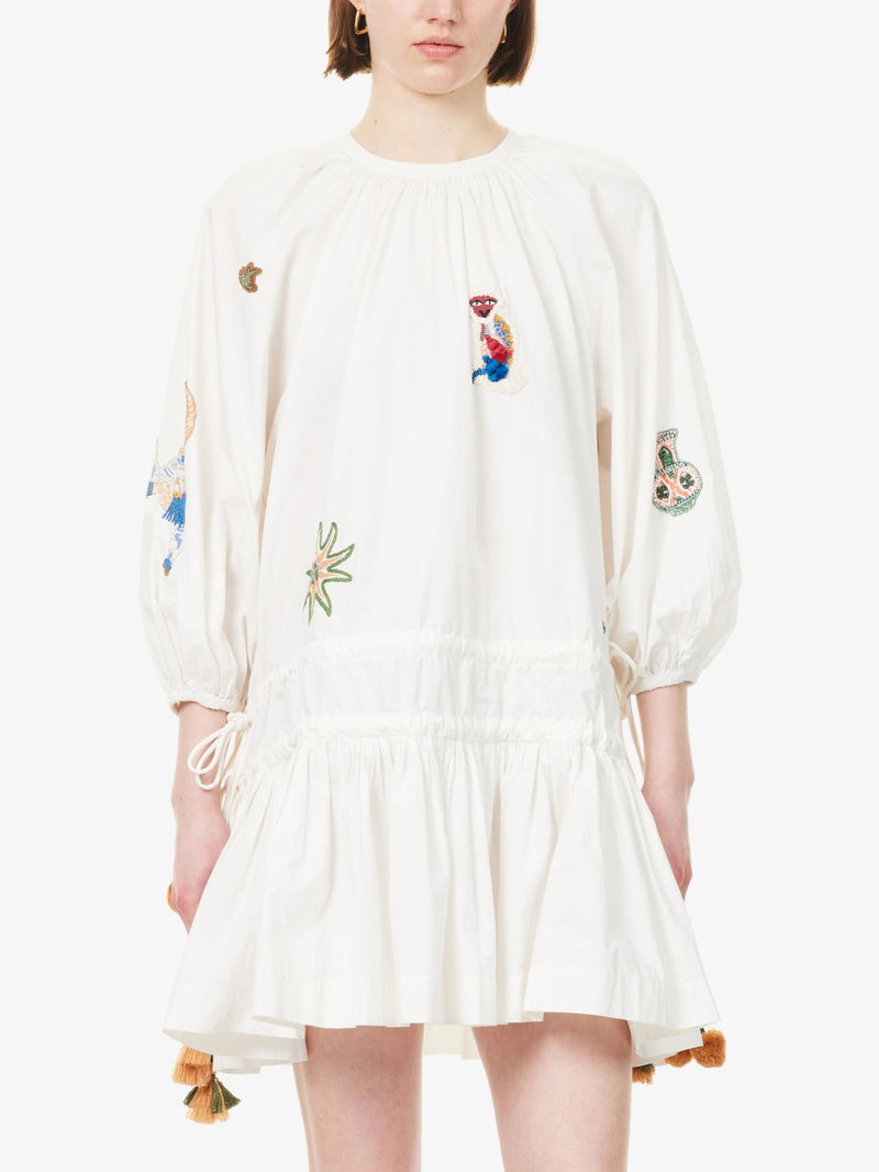 Carmine Embroidered Cotton Mini Dress