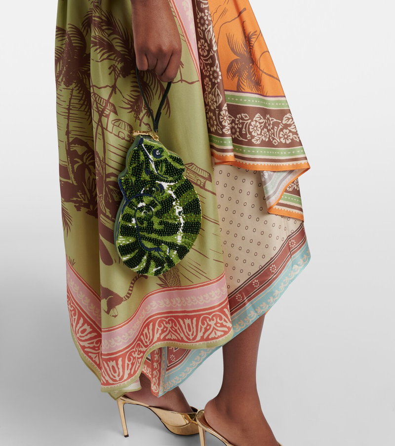 Accessorize with glamorous styles from Alémais. The Chameleon small clutch features supple leather trims and is adorned with dazzling beads.