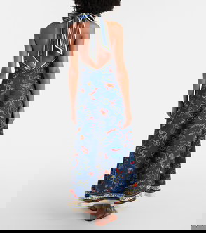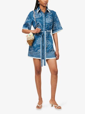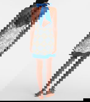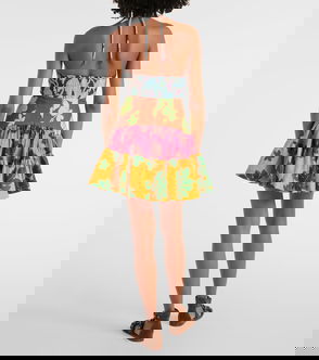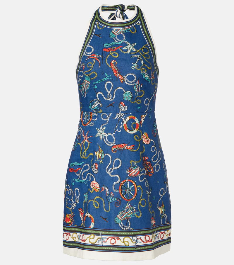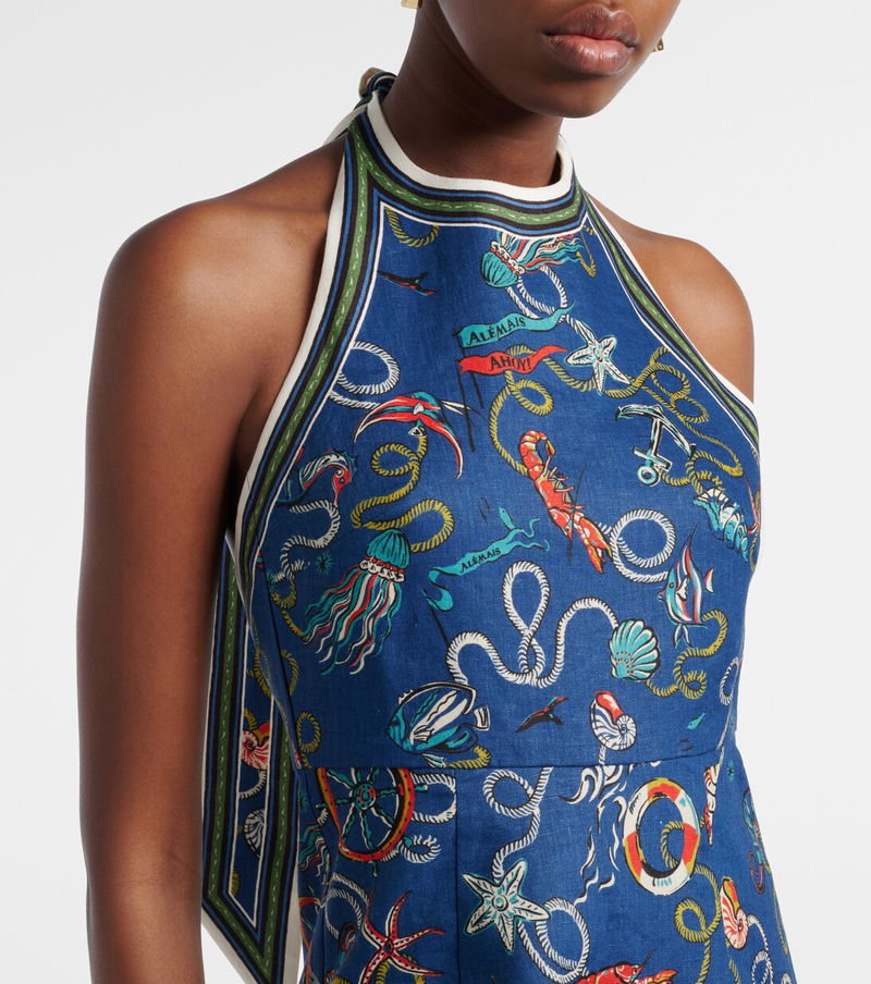 A contemporary brand with an artisanal focus, Alémais celebrates the art of fashion through an eclectic mix of patterns and prints. The Cove minidress is made from pure linen with a self-tie halterneck and a colorful motif.