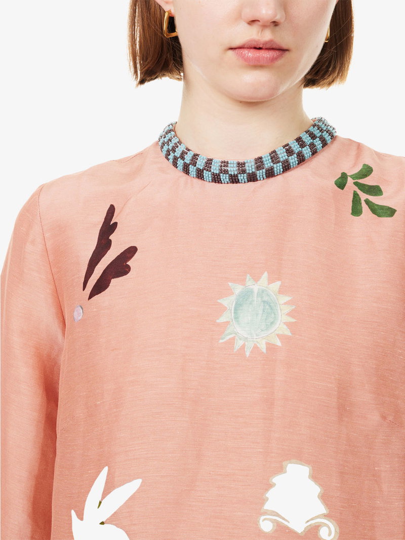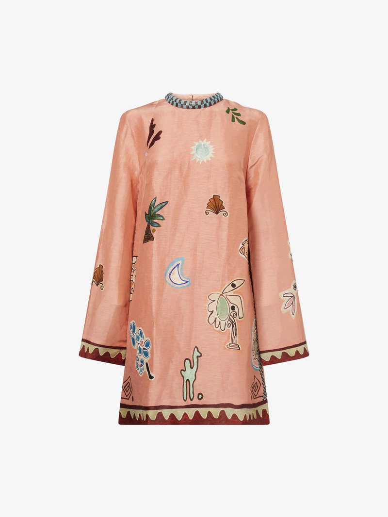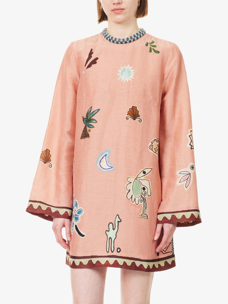 Laurence Graphic-Pattern Linen-And-Silk Mini Dress