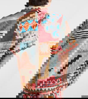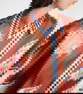 Relaxed fit, point collar, short rolled sleeves with buttoned tab, all-over graphic print, curved hem