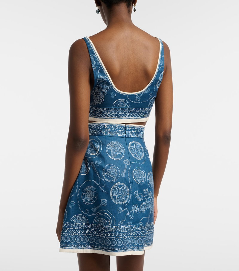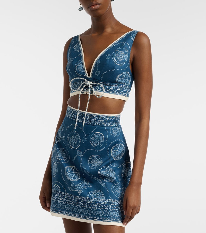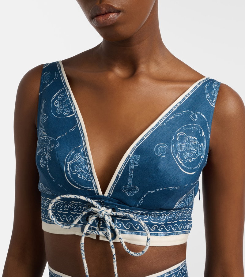 Lucky Printed Linen Crop Top