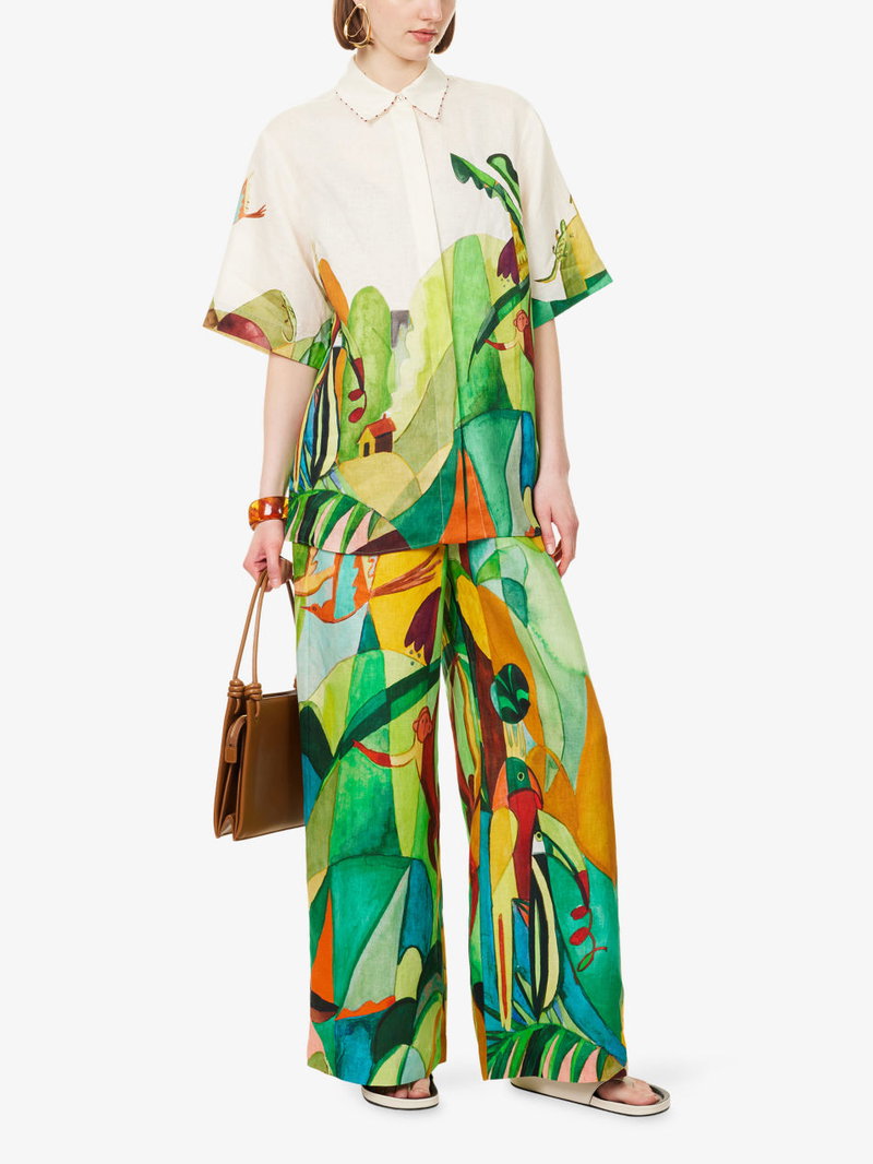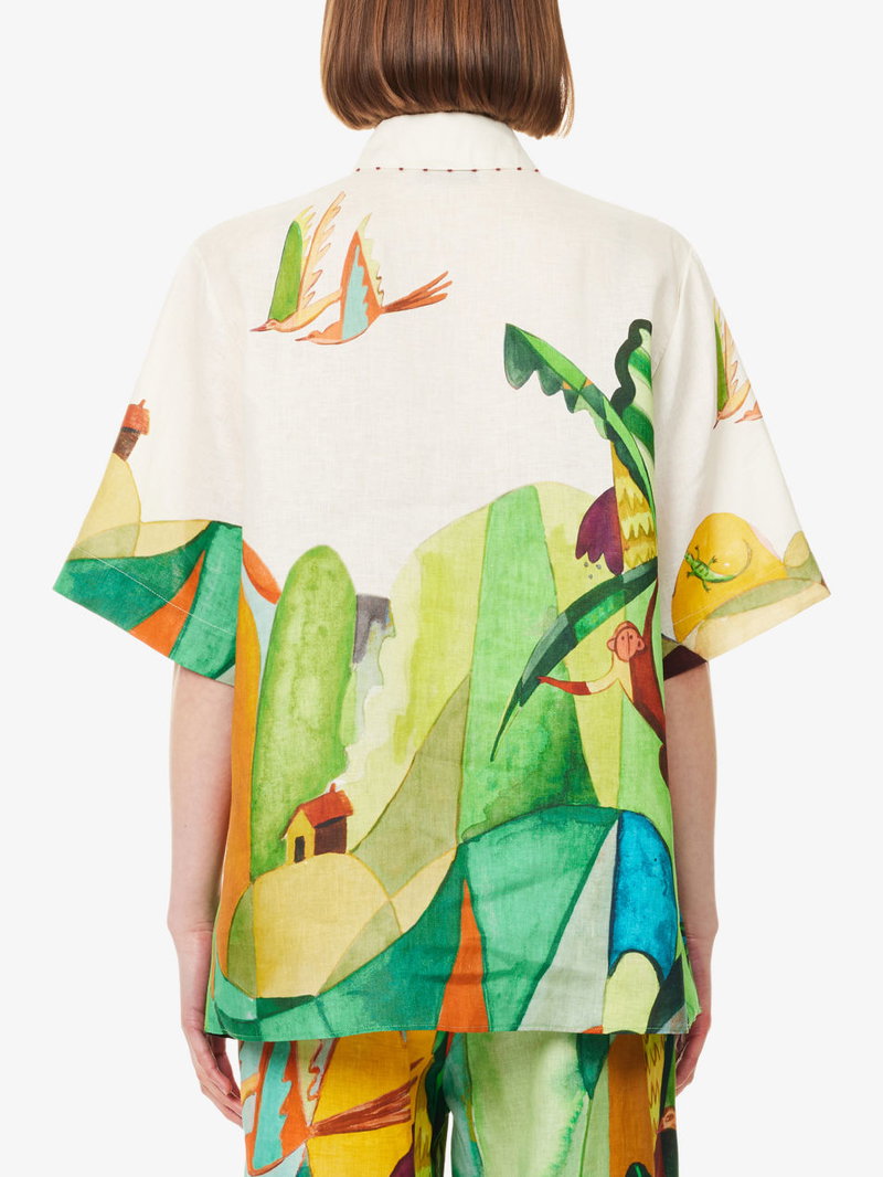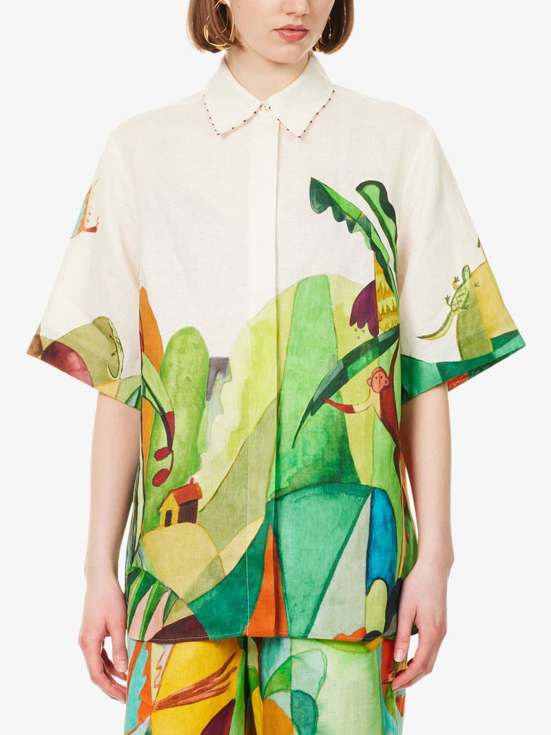 Mokshini Printed Relaxed-Fit Linen Shirt