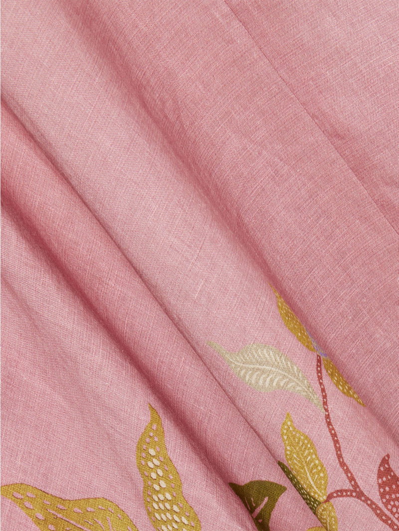 Made with at least 50% linen. Linen is made from the fibres of the flax plant. Flax is resilient and can grow in poor soil, using less water than cotton to produce.'