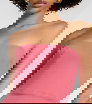 The Brooks dress from Alex Perry will make an elegant addition to your evening-wear edit. It features a strapless bodice, a ruched design, and an all-over burnout print. It comes with opera gloves that frame the midi length silhouette.