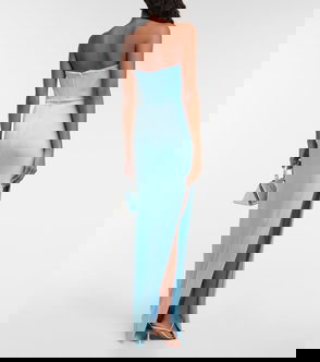 Column Embellished Pinstripe Velvet Maxi Skirt