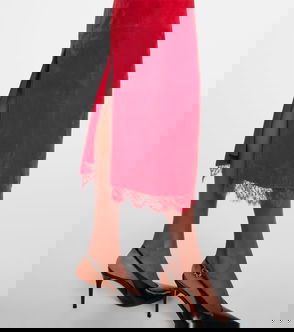 Lace-trimmed Suede Midi Dress