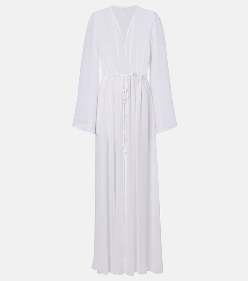 The Betty kaftan by Alexandra Miro exudes timeless elegance with its flowing silhouette. The sheer style is crafted from lightweight georgette and is rendered in a candid white hue.
