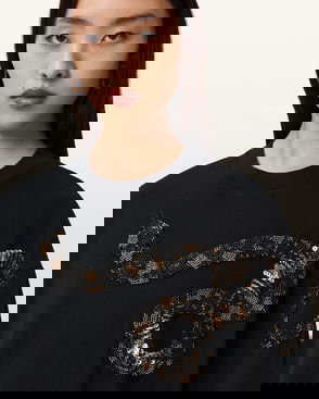 An elevated staple. The Amelie T-shirt is crafted from organic cotton to an oversized silhouette. It's detailed with sequin and crystal flower embellishments to add a subtle touch of sparkle to your everyday. Pair it with joggers when you're chilling, or leather trousers for nights out.
