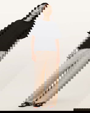Boxy shapes never fail. Meet the Lisa T-Shirt, it's a new addition to our essential jersey collection. Crafted from heavyweight organic cotton with a crew neck and short sleeves. It's finished with distinctive stitches and our signature on the back of the neck. Wear it with low-rise baggy denim jeans, relaxed tailoring and leather loafers – a go-to look you can count on.