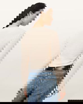 The classic tee gets a summery update. The Lottie is shaped from a lightweight blend of linen and silk with half sleeves and a round neck. Style with all of your warm weather looks.