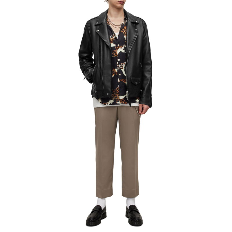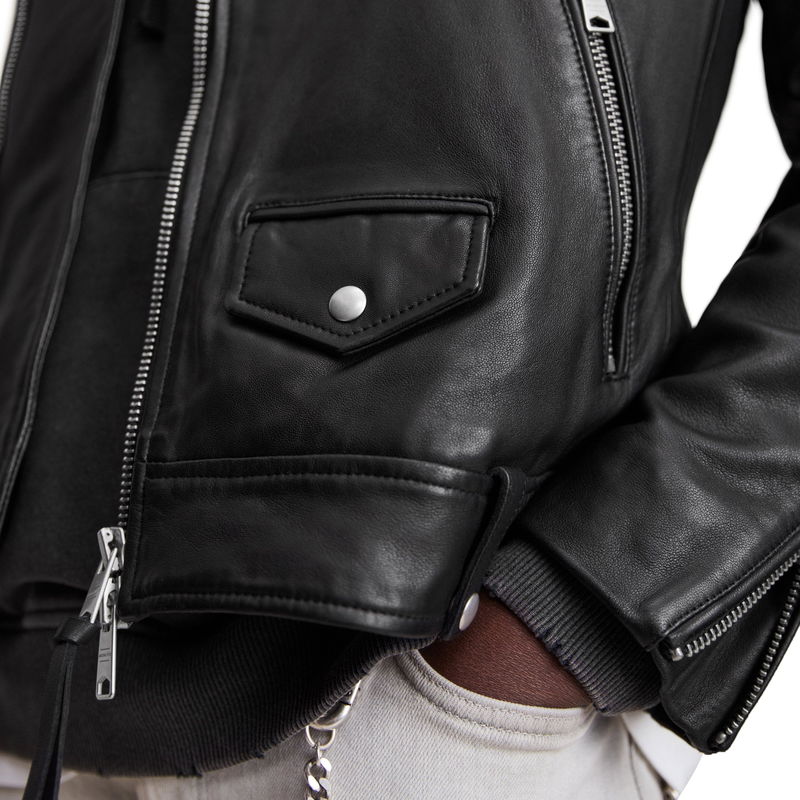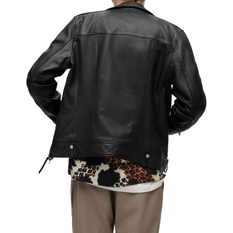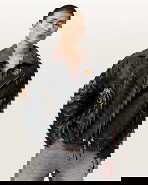 The AllSaints Milo Biker Long Sleeve Jacket unites classic motorcycle style with rugged edge. Made from soft material, this short-cut jacket features authentic biker details including an asymmetric zip front, ticket pocket and practical loops for a customisable fit.