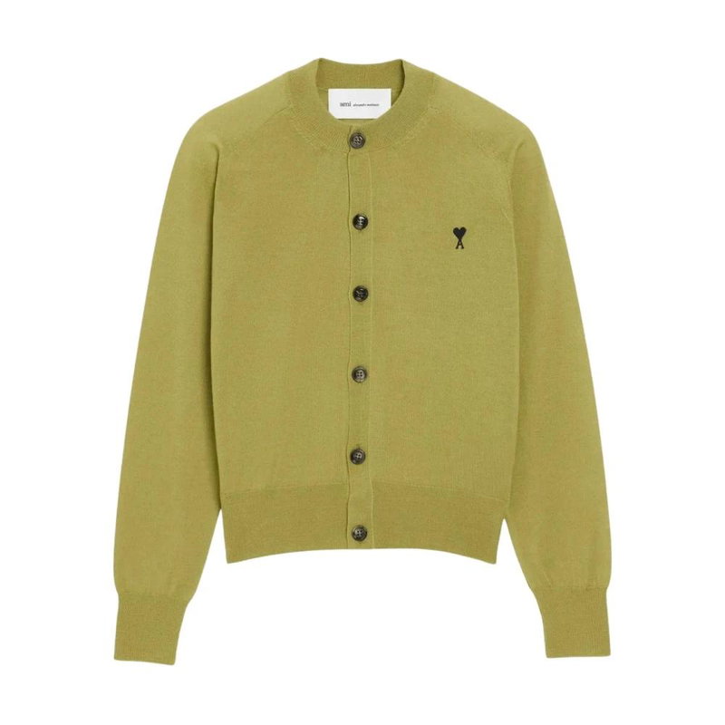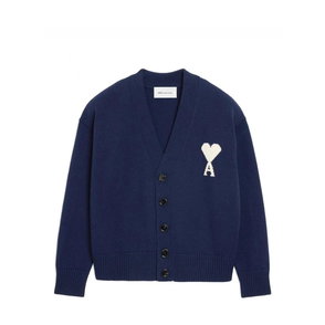 Ami Paris ADC Cardigan is a merino-wool knit cardigan from Ami Paris, highlighted by the signature Ami de Coeur chest embroidery for a refined, everyday layering piece.