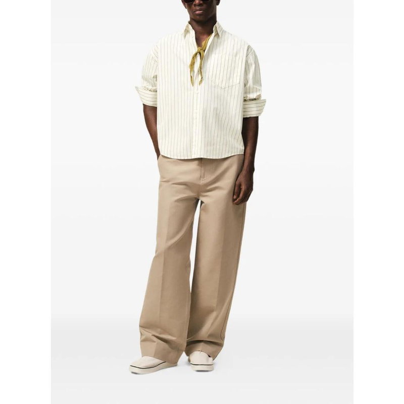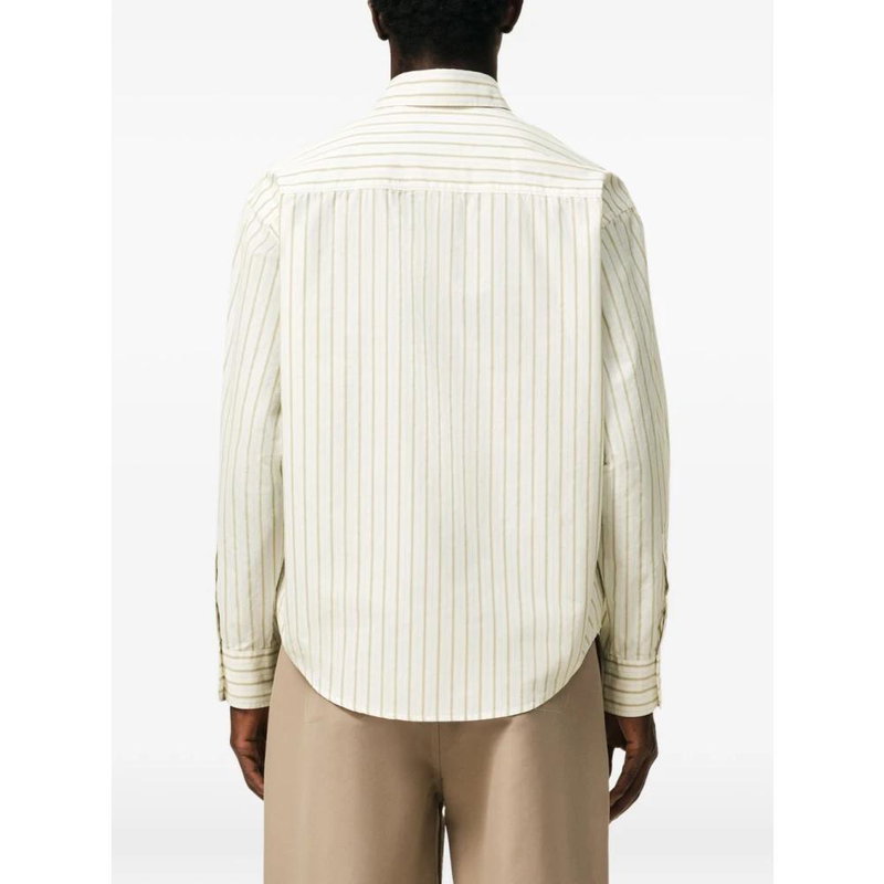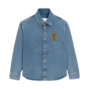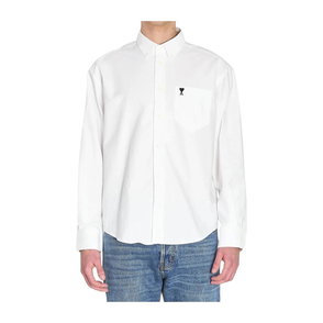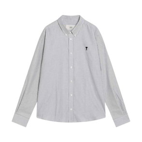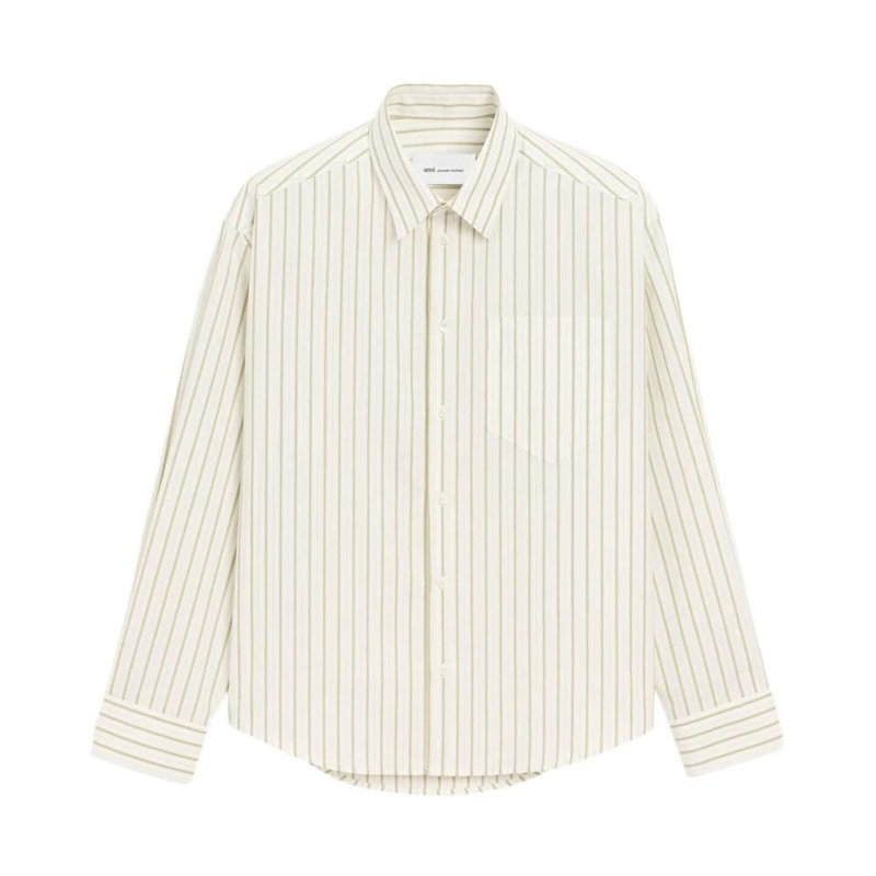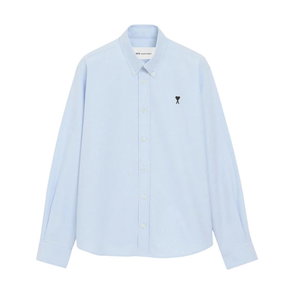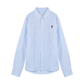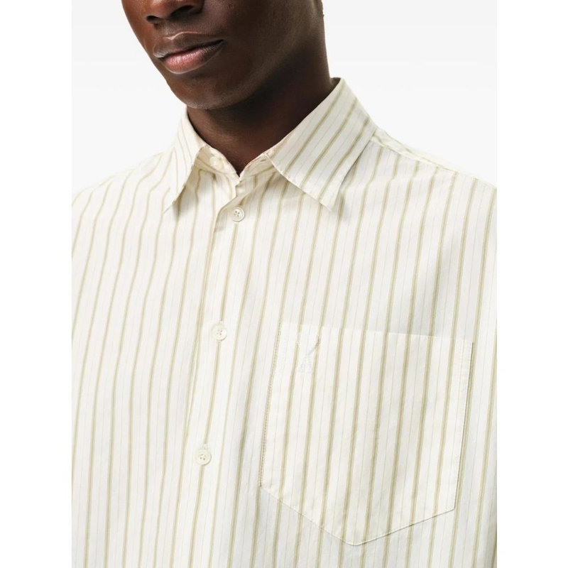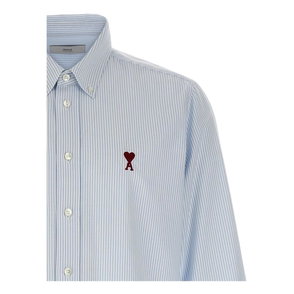 Ami Paris De Coeur Embroidered-Logo Shirt features tonal heart embroidery and a striped cotton build, designed for everyday smart-casual wear.