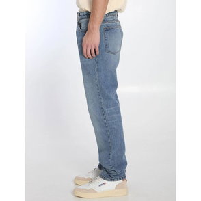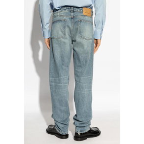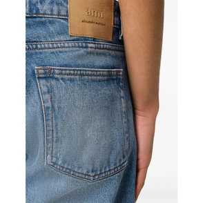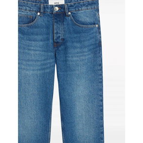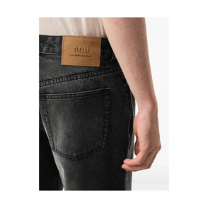 Ami Paris Large Fit Jeans pair the brand's signature detailing with a roomy, straight silhouette. These used-black denim jeans are designed for relaxed everyday wear with a casual, loose fit.