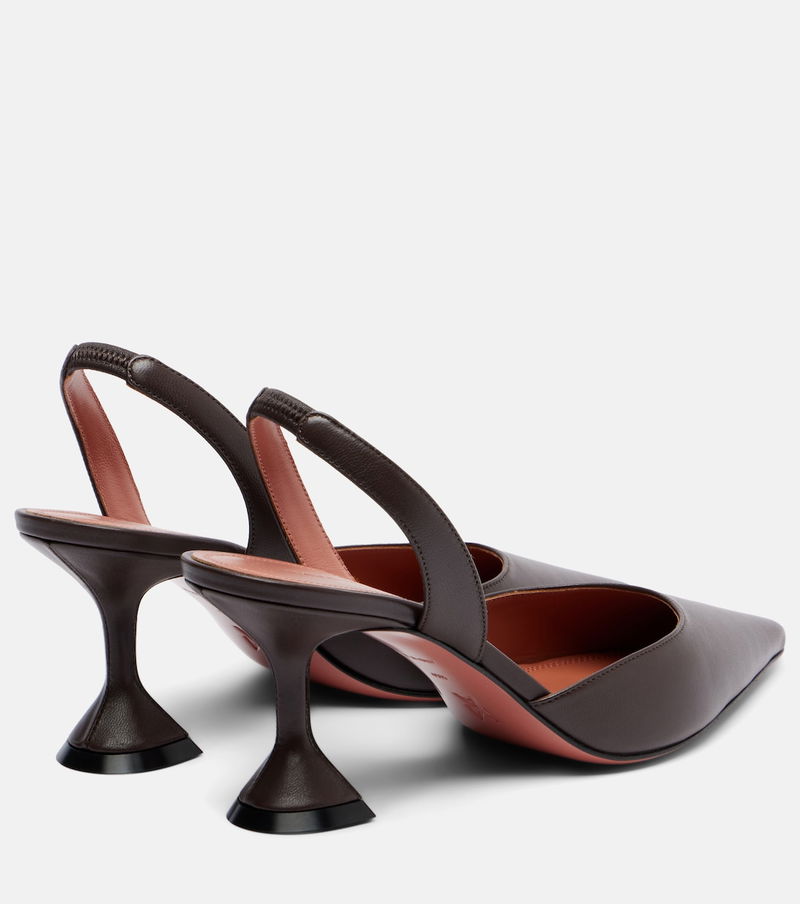 Amina Muaddi has quickly become a fashionable favorite thanks to its eye-catching and sculptural shoes. Made in Italy from brown leather, the Holli pumps are a classic slingback pair with 70mm flared heels.