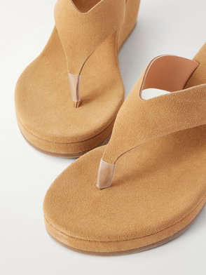 Handmade by artisans in Greece, Ancient Greek Sandals brings the best of centuries-old techniques to modern footwear. Crafted from black suede, the Charys thong sandals sit atop wedge heels.