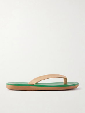 Handmade by artisans in Greece, Ancient Greek Sandals brings the best of centuries-old techniques to modern footwear. The Etheria thong sandals are set atop platform soles and feature bright green upper straps.