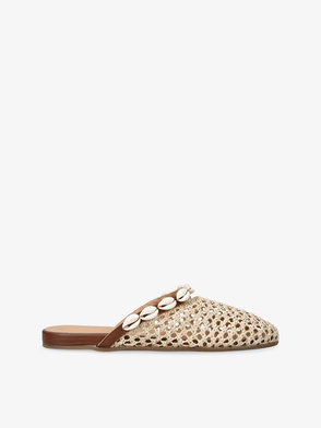 Handmade by artisans in Greece, Ancient Greek Sandals brings the best of centuries-old techniques to modern footwear. These mules boast raffia uppers with metallic leather trims.