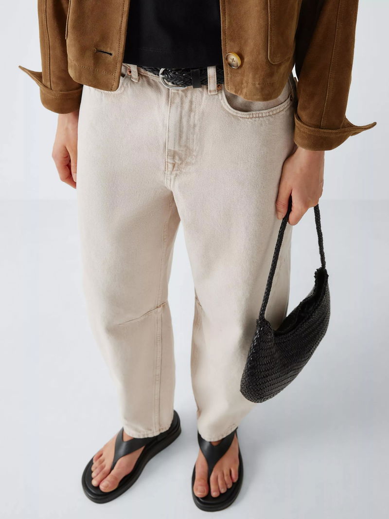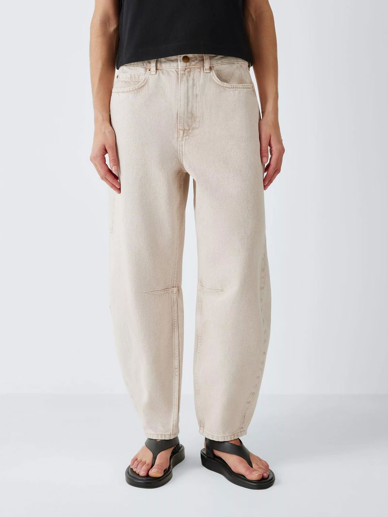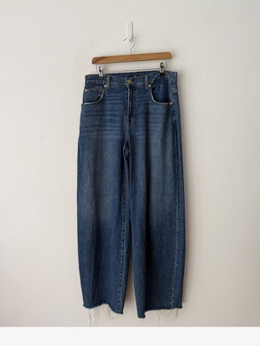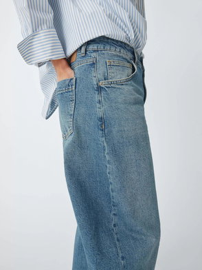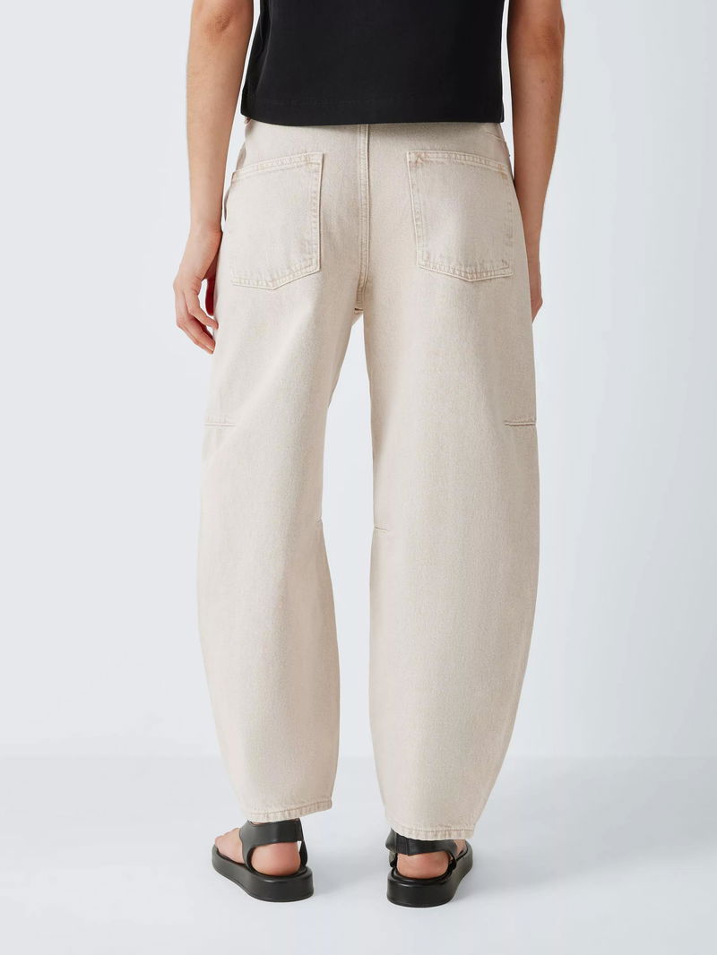 Barrel leg jeans. Classic 5 pocket styling. Pure cotton denim.
