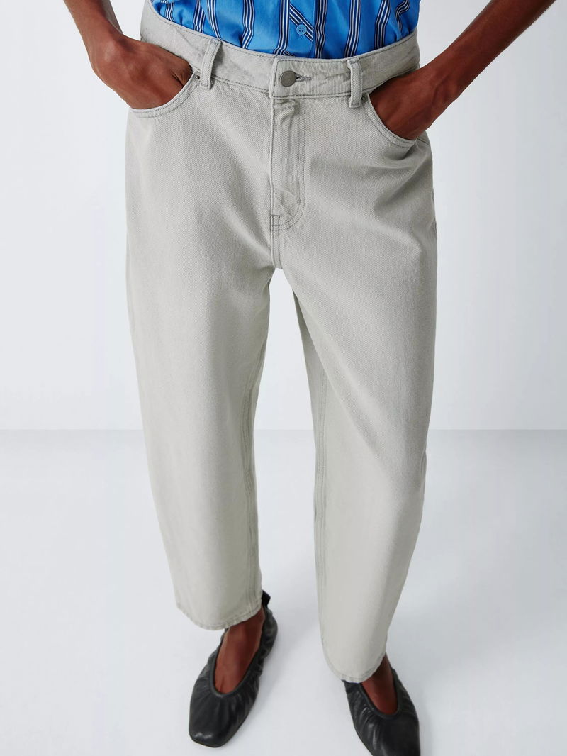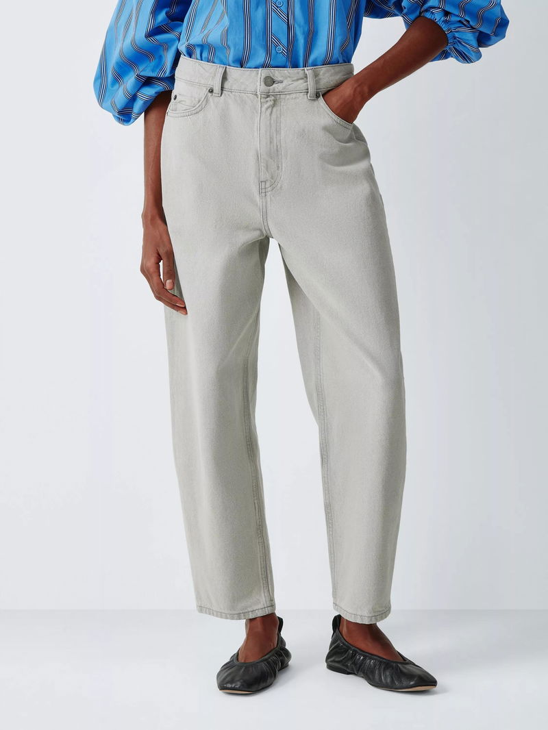 Barrel leg jeans5 pocket styling. Pure cotton denim.
