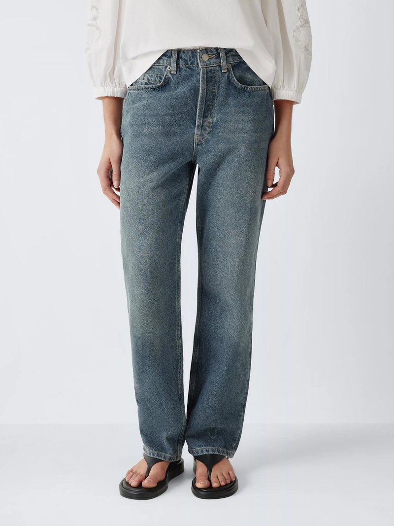 Mid rise straight leg jeans. Classic five pocket styling. Pure cotton denim.