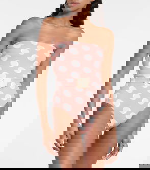Cut in a crochet fabric the Solait swimsuit is in a bandeau cut to show off your neckline. It has both ring and cut-out details at the centre front, plus the hallmark And/Or log tab at the left hip.