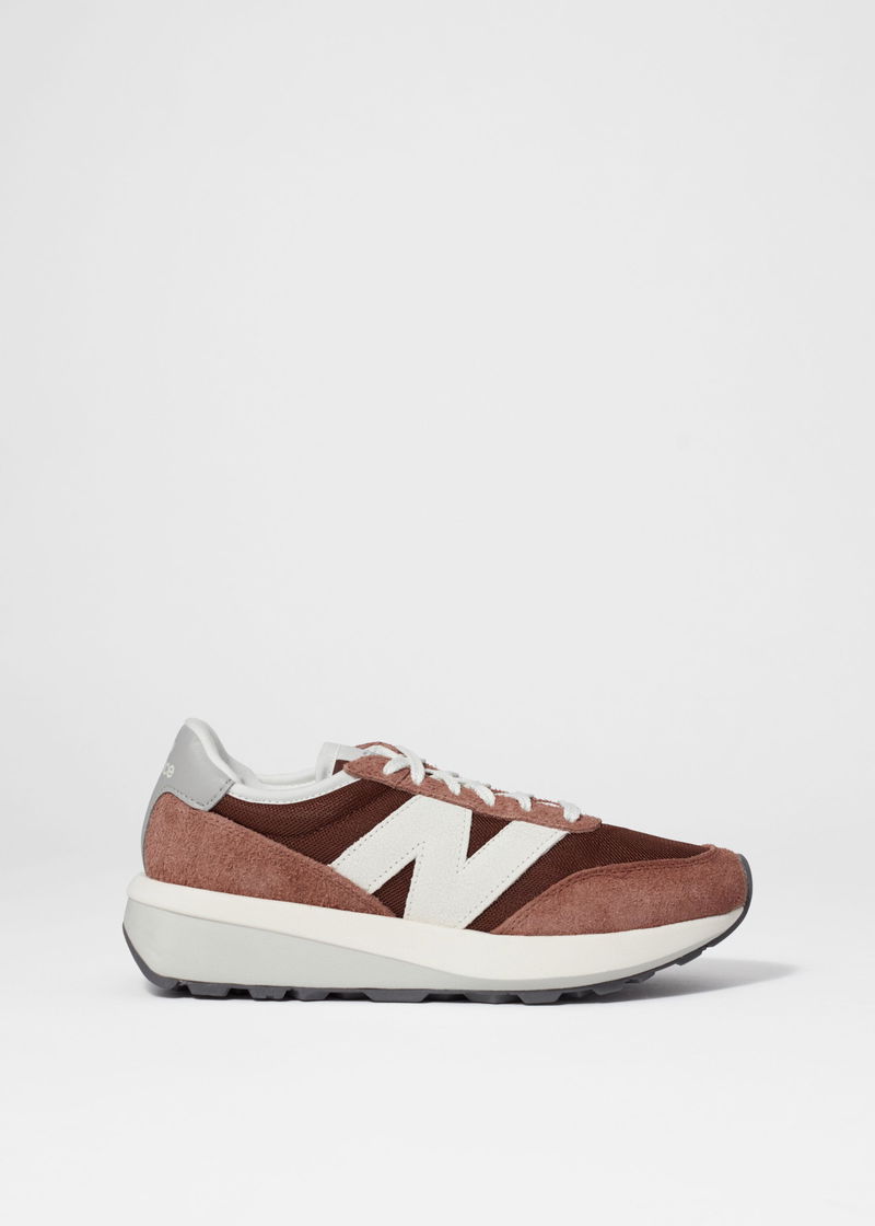 The New Balance 370 is a stylish and comfortable sneaker. It features a suede and mesh upper, a rubber outsole, and a comfortable midsole.