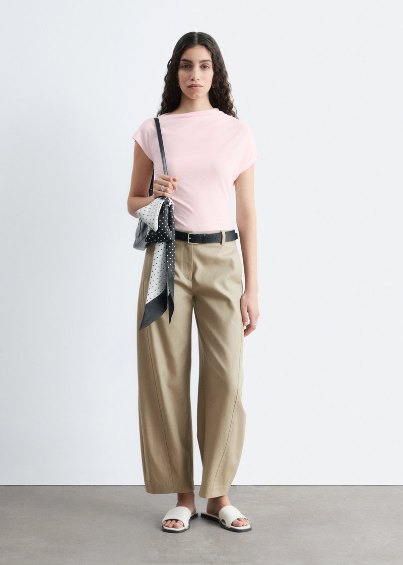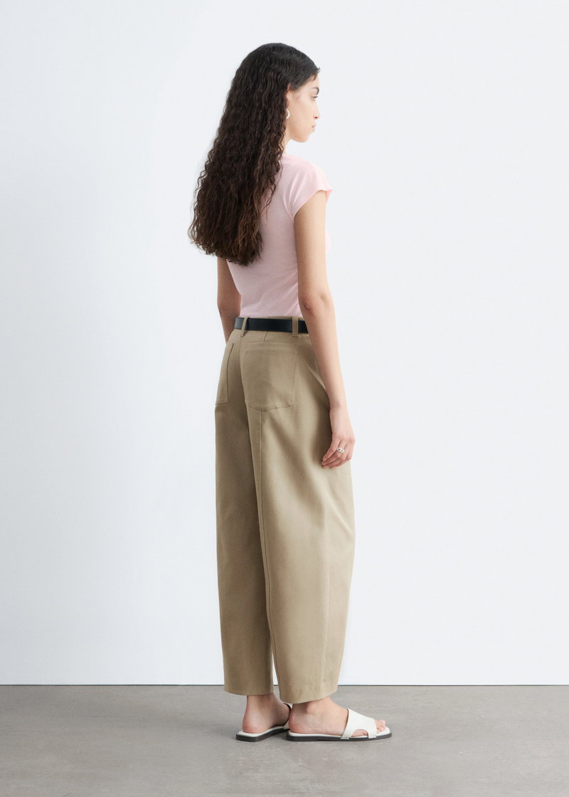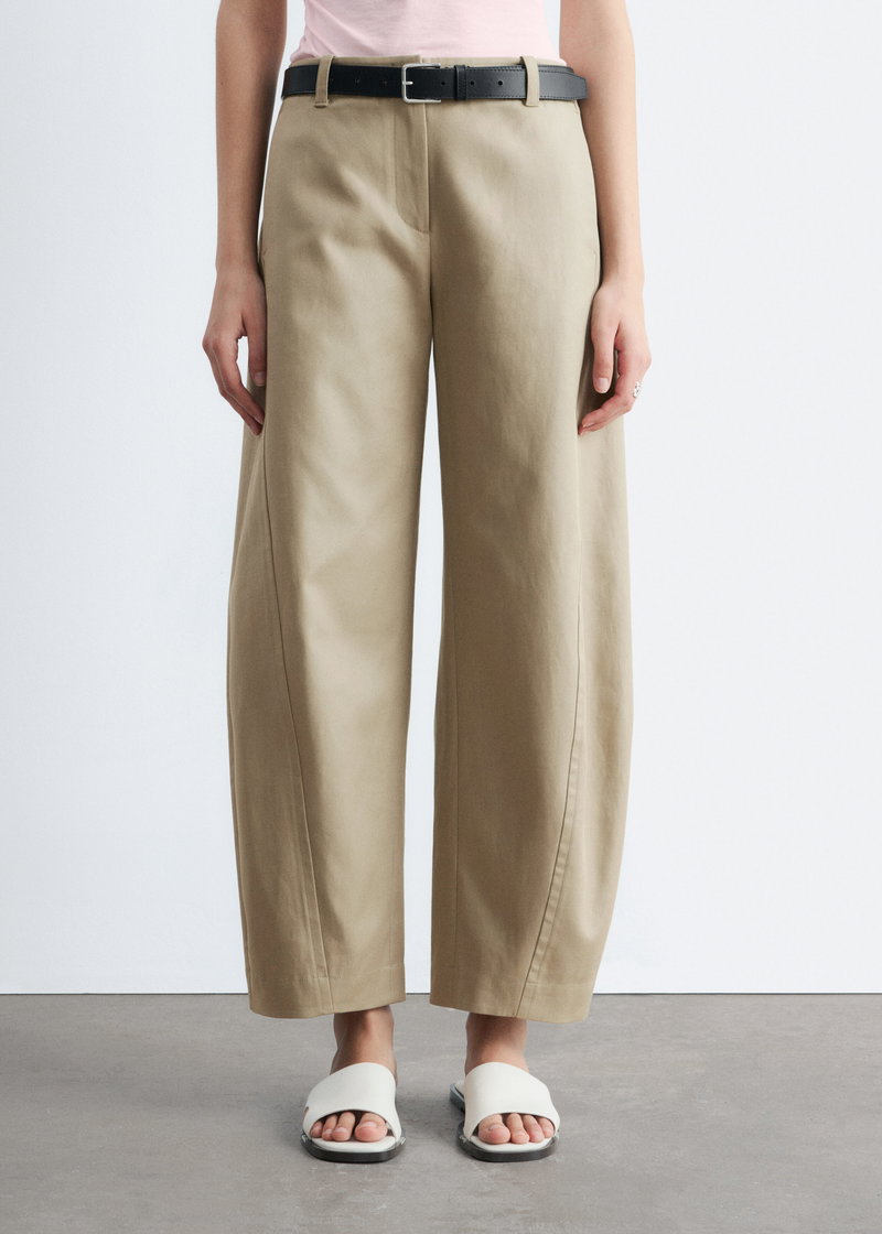 Barrel-Leg Cotton Twill Trousers