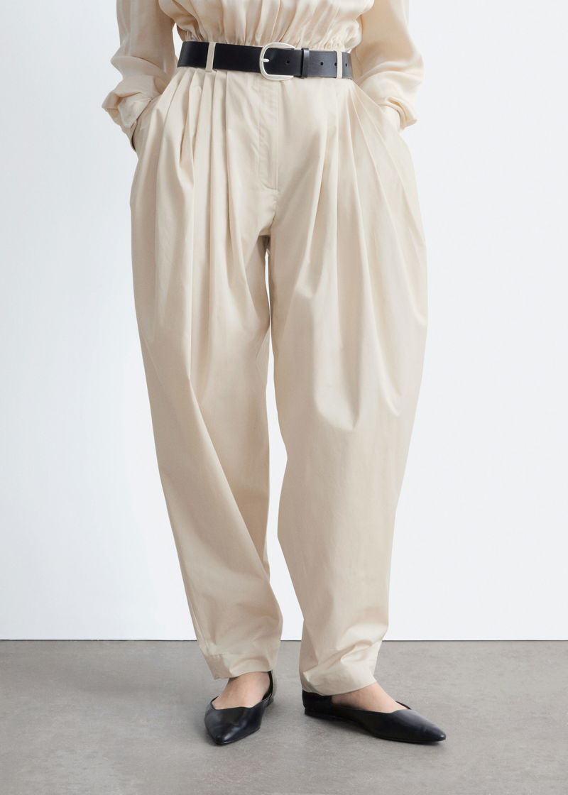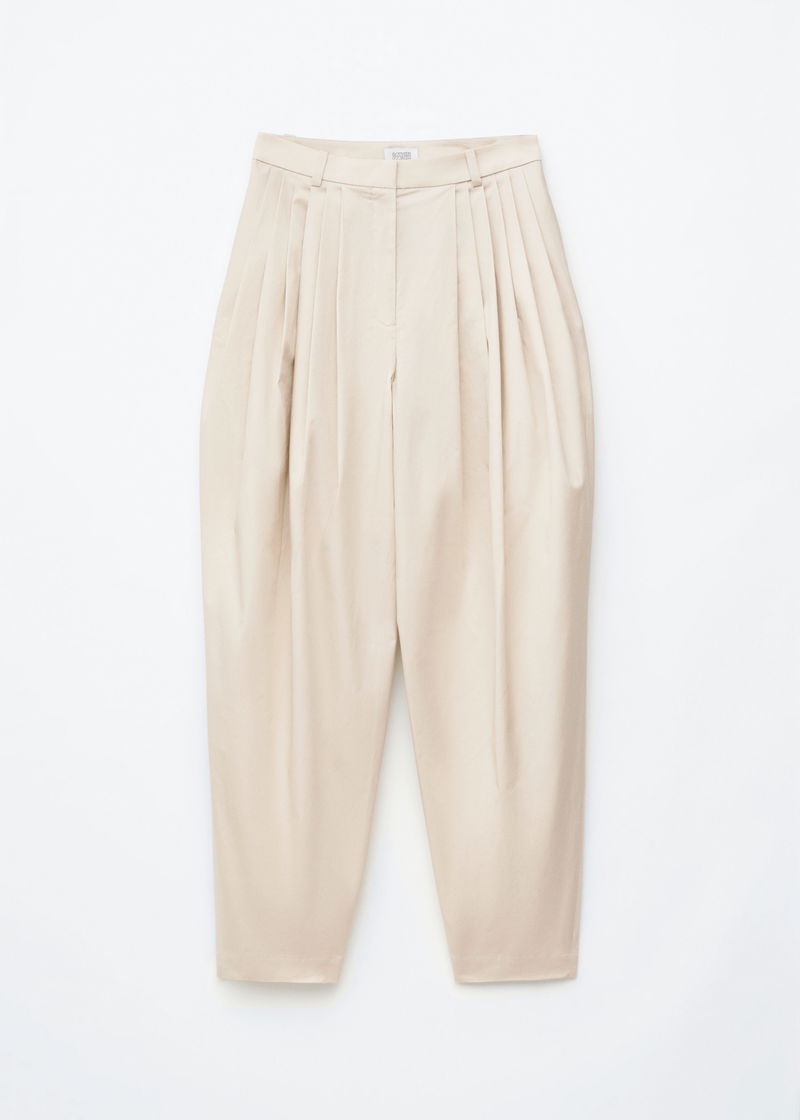 Barrel-Leg Pleated Trousers