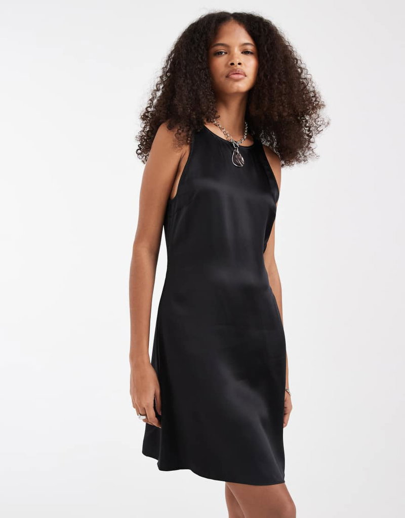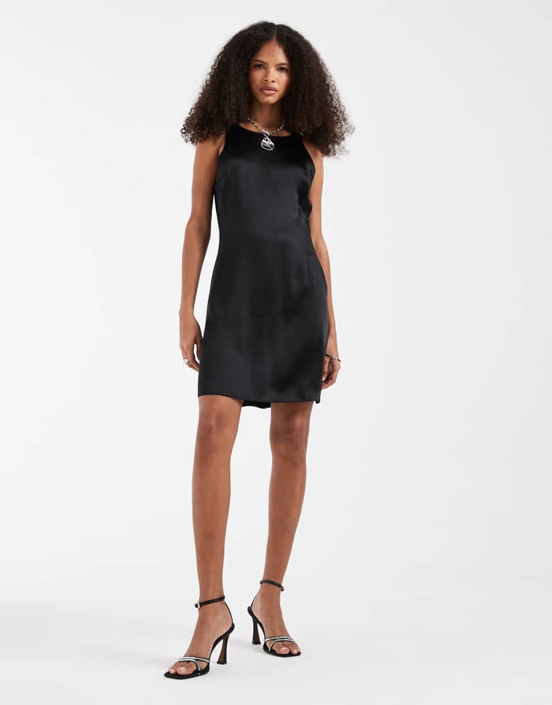 Bias Cut Satin Mini Dress In Black