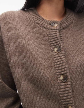 This cardigan is knitted from a merino wool and cashmere blend. Cut in a loose silhouette, it features a round neck, ribbed trims, and subtle slits at the side hem. Traced with buttons down the front.