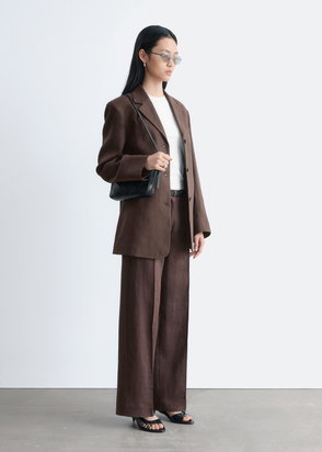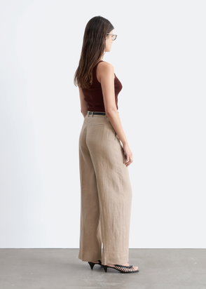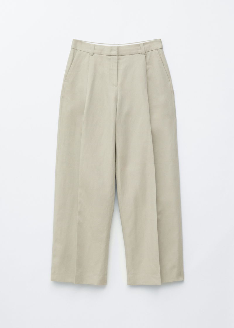 Crafted from a breathable blend of cotton, linen and viscose, these trousers sit low on the waist in a relaxed silhouette. Single front pleats and pressed creases at the front and back add definition to the fluid shape.
