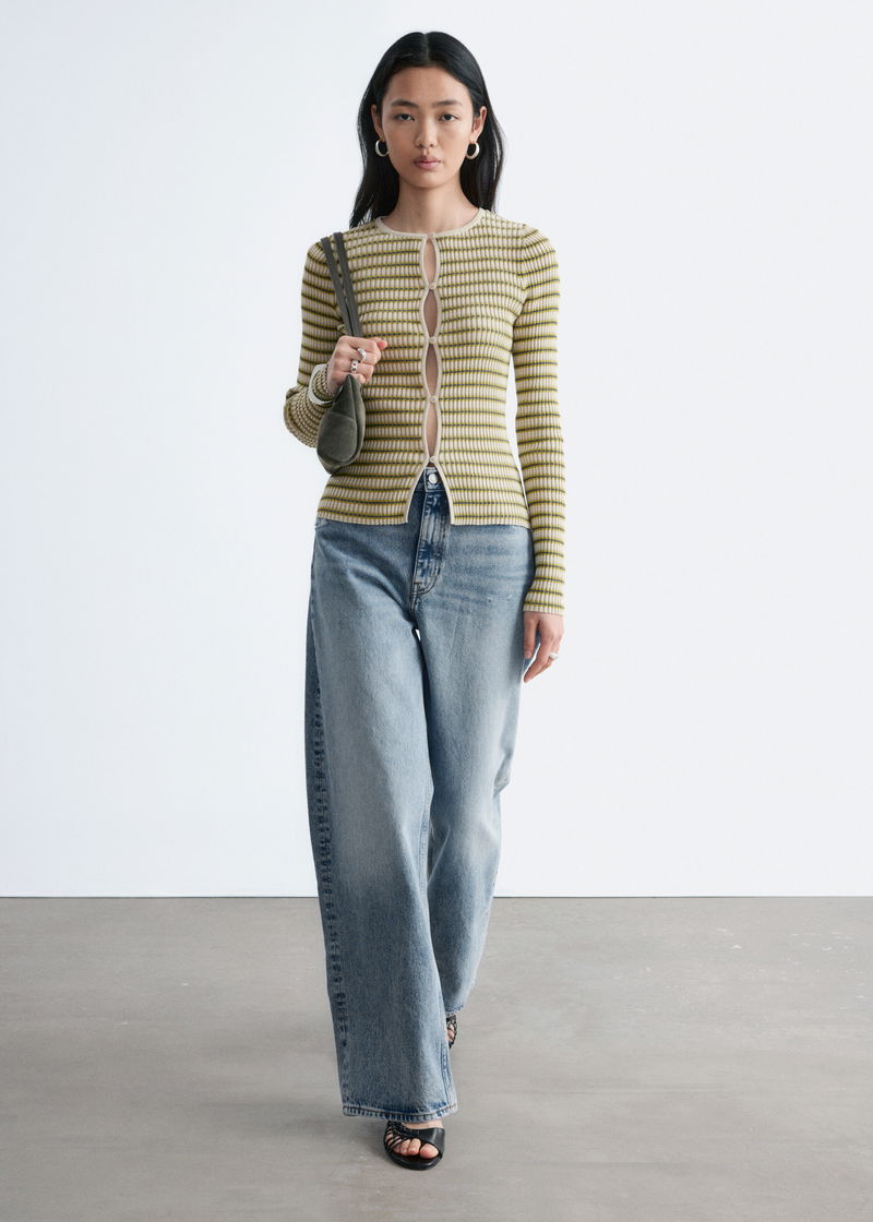 Keyhole-Front Rib-Knit Cardigan