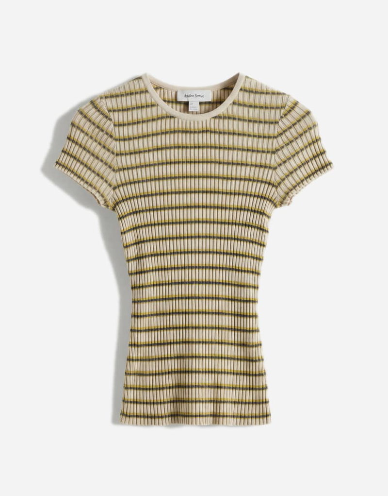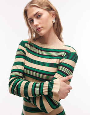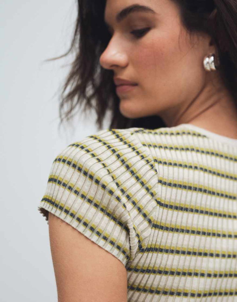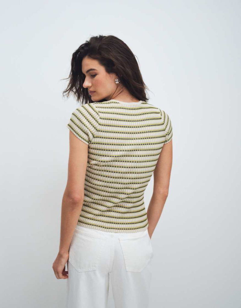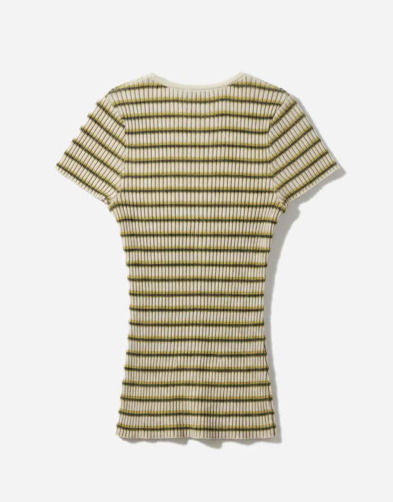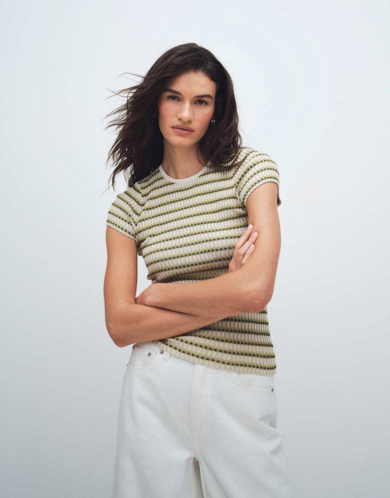 Knit T-shirt In Green Stripes